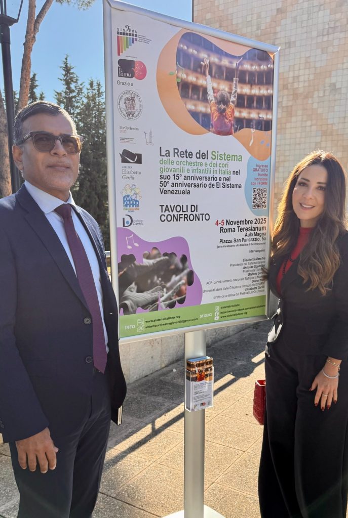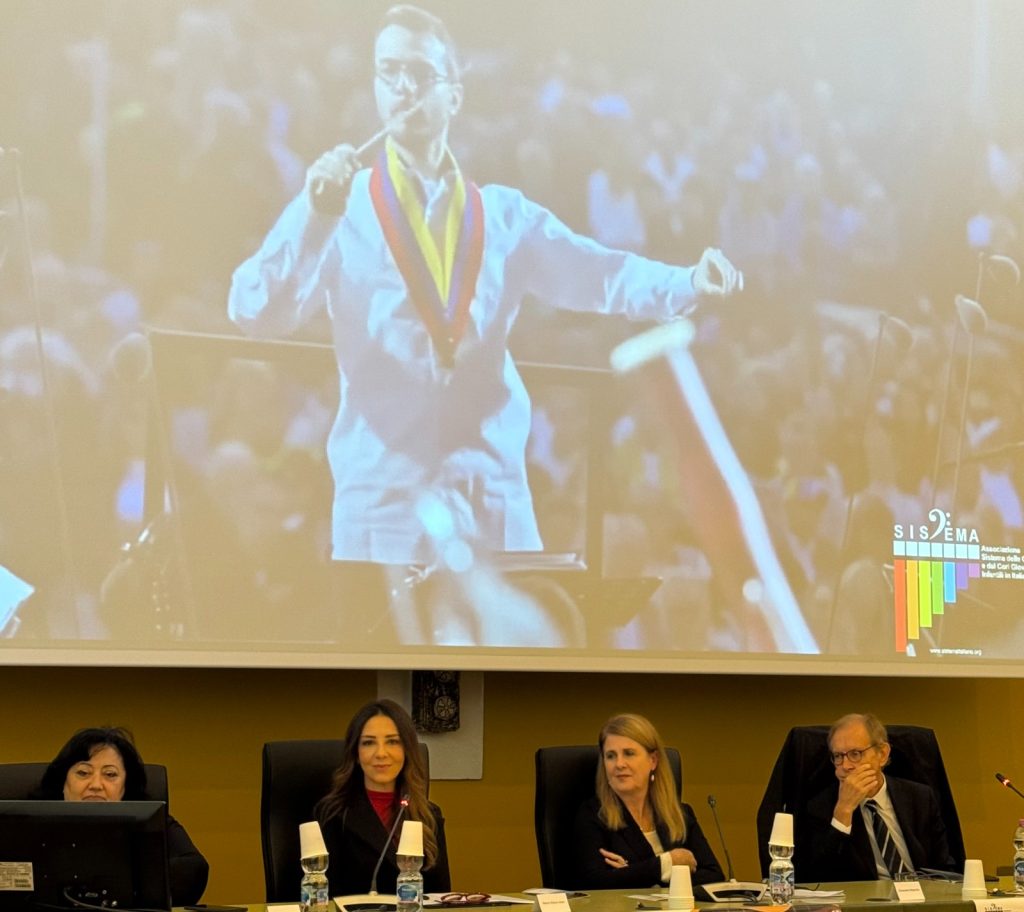 Roma, 10 de noviembre de 2025.- Con motivo del 15.º aniversario del Sistema Italia y del 50.º aniversario del Sistema Nacional de Orquestas y Coros Juveniles e Infantiles de Venezuela (El Sistema), se organizó en Roma una jornada de encuentros de dos días dedicadas a profundizar el tema sobre la música y el arte como instrumentos de inclusión social.