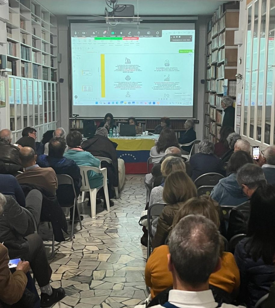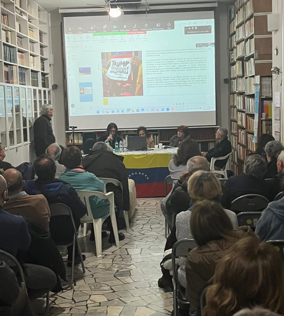 La cónsul general de la República Bolivariana de Venezuela en Nápoles (Italia), Esquía Alejandra Rubín De Celis, participó en el Encuentro Informativo “Amenaza a la Paz en Venezuela y en América Latina”, convocado por la Red de Solidaridad con Venezuela en la ciudad de Bari, región Puglia, y la Asociación Cultural Marx XXI.
