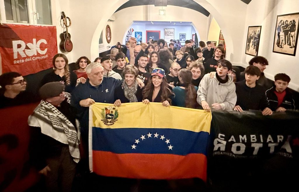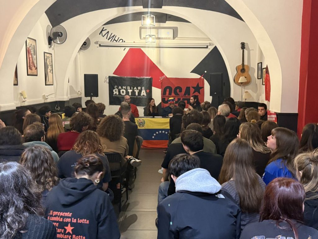 El foro, titulado «Manos fuera de Venezuela: resistir al imperialismo, construir un nuevo mundo», fue organizado por el profesor y economista Luciano Vasapollo, junto a las organizaciones juveniles Cambiare Rotta y OSA.