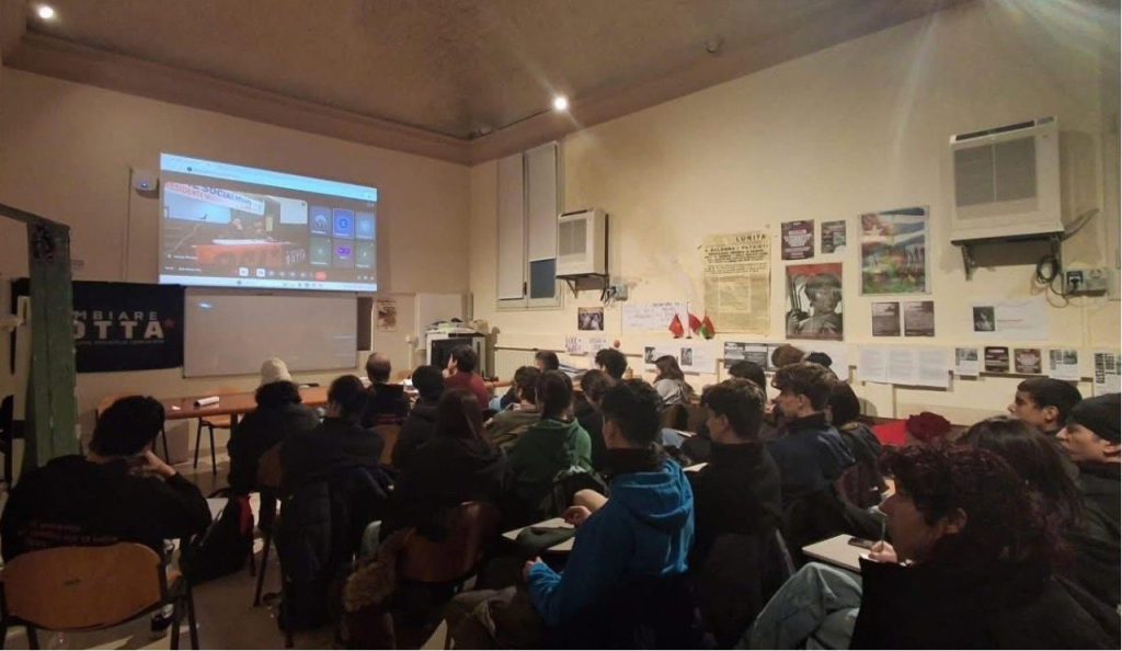 Italia, 21 de enero de 2026.- A raíz de los recientes acontecimientos mundiales que impactan el orden político actual, en la Universidad de Bolonia se realizó una sesión de formación denominada “De Venezuela a Irán: Los Objetivos del Imperialismo Occidental en Crisis”, con la presencia de Alessandro Perri, de la Red Comunista, y también con la participación de la organización estudiantil OSA y la organización juvenil “Cambiare Rotta”.